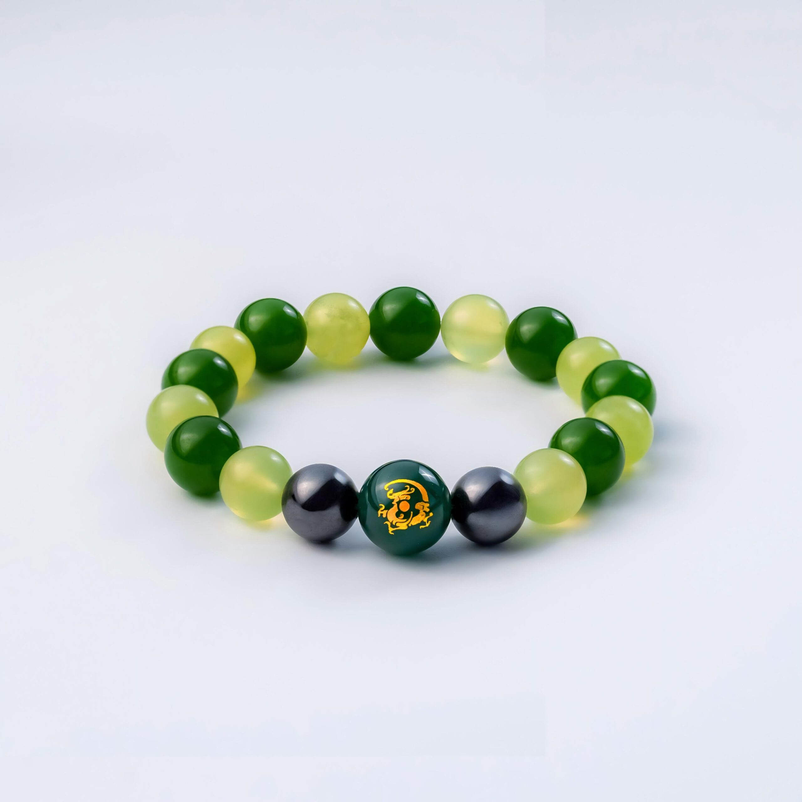 温润的玉珠则是点睛之笔,触感细腻莹润,承载着华夏千年的平安祈愿。玉与青龙相生相契,既中和了神兽的锋芒,又为手链增添吉祥底蕴,让木之生机与平安寓意深度融合。